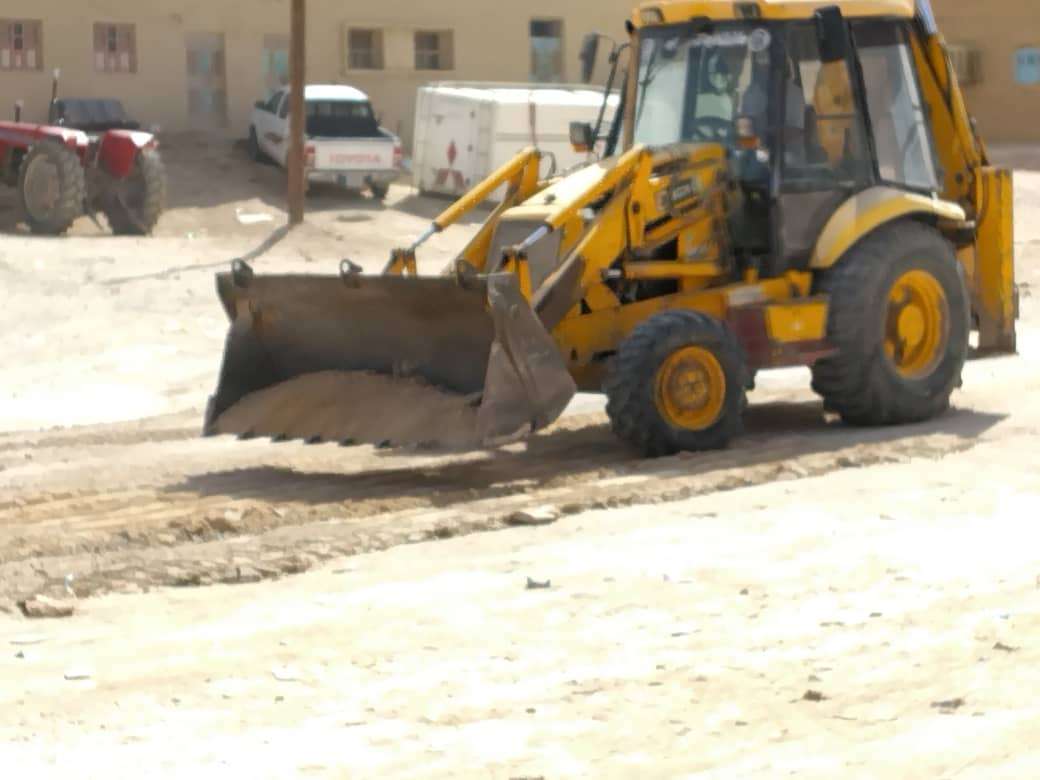 بأن العمل قد بدأ منذ يوم الامس الاثنين لإزالة مخلفات الأمطار والسيول من شوارع مدينة القطن وضواحيها
