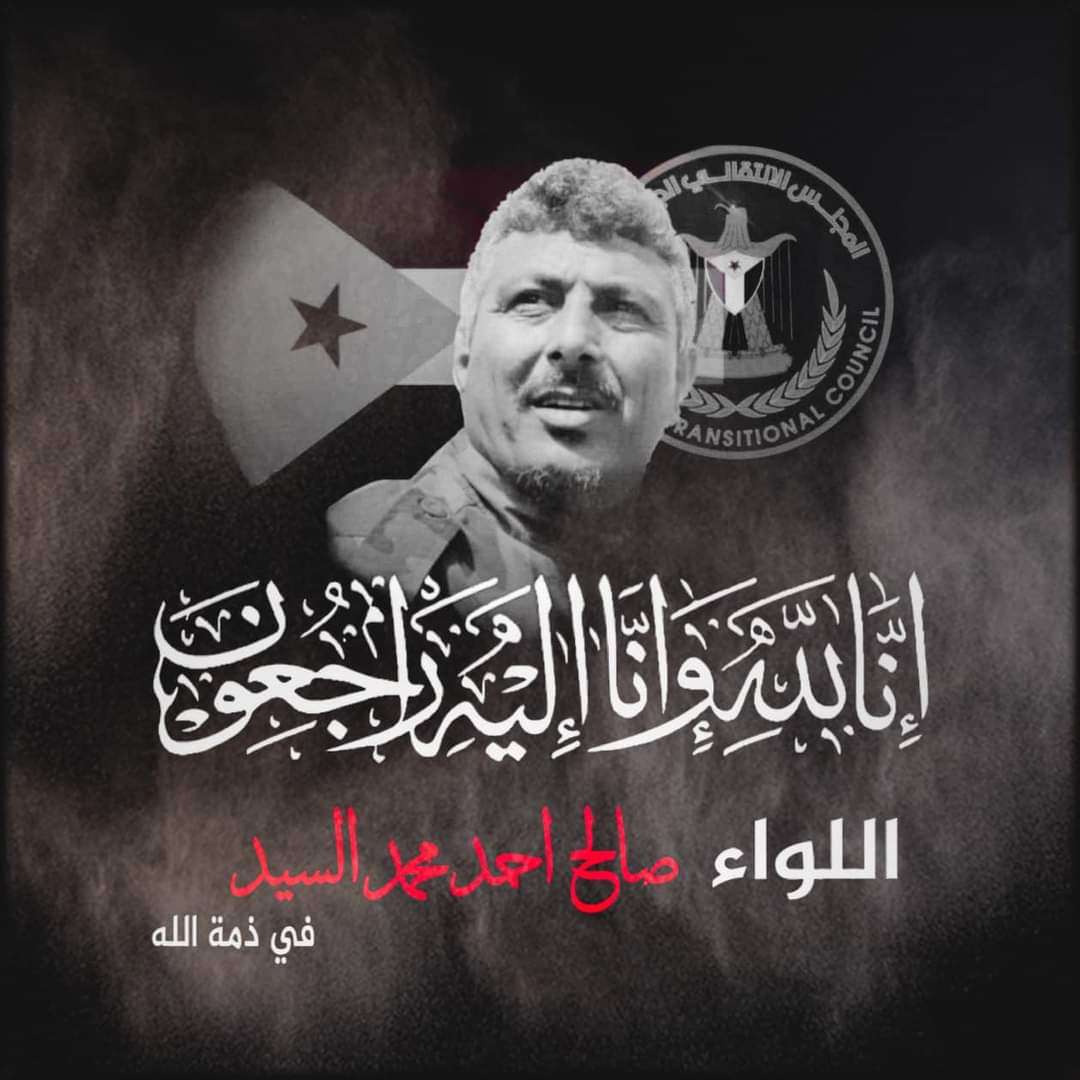 تقرر مساء اليوم الخميس موعد تشييع جثمان فقيد الوطن اللواء الركن صالح السيد اركان القوات البرية الجنوبية مدير عام أمن محافظة لحج إلى مثواه الأخير.