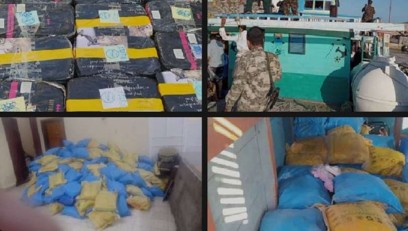 ألقت قوات خفر السواحل في محافظة المهرة القبض على سفينة تحمل العلم الإيراني على متنها 3 اطنان من الحشيش المخدر و173 كجم من مادة الهروين مساء اليوم الخميس بسواحل مدينة الغيضة الشرقية.