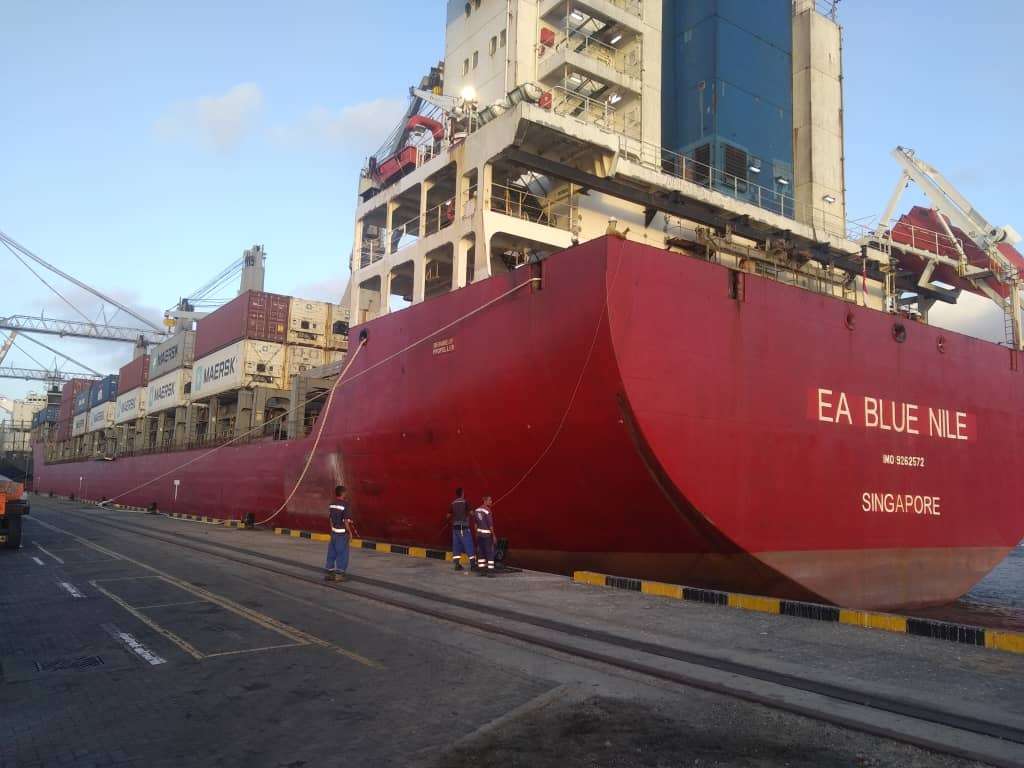 دخول سفينة الحاويات "EA Blue Nile" ميناء عدن فور وصولها
