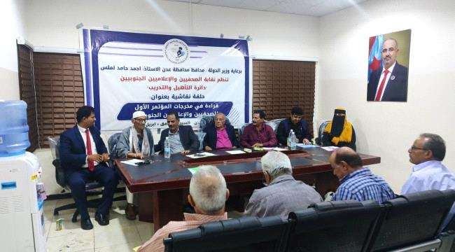 الحلقة النقاشية كانت تحت عنوان (قراءة في مخرجات المؤتمر الأول للصحفيين والإعلاميين الجنوبيين).