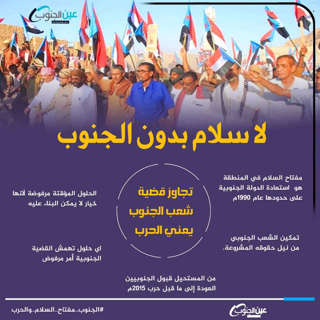 واستطردوا: "منذ أن تأسس المجلس الانتقالي الجنوبي في عام 2017م، وهو يحمل راية السلام، لكن لا يعني ذلك أن السلام بمفهومه الحقيقي هو تجاوز قضية الجنوب، أو العودة إلى ما قبل حرب 2015م".