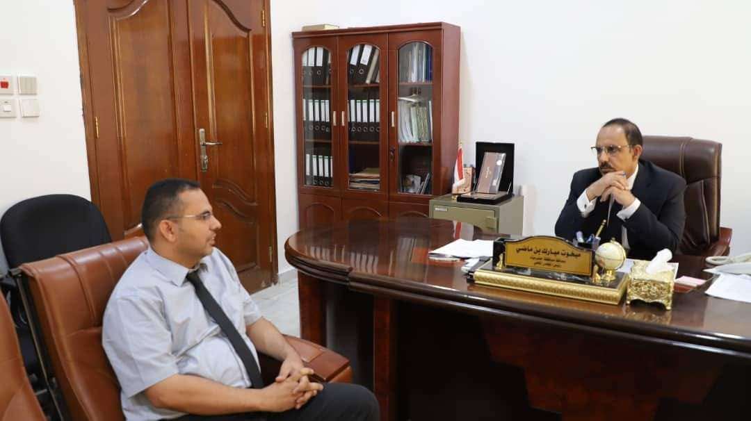 وبحث المحافظ مع المدير العام للمكتب الدكتور سالم صلاح باجابر، الرؤى العملية لتطوير قطاع التعليم الفني لأهميته في تقديم الكوادر الوسطية المؤهلة لسوق العمل.