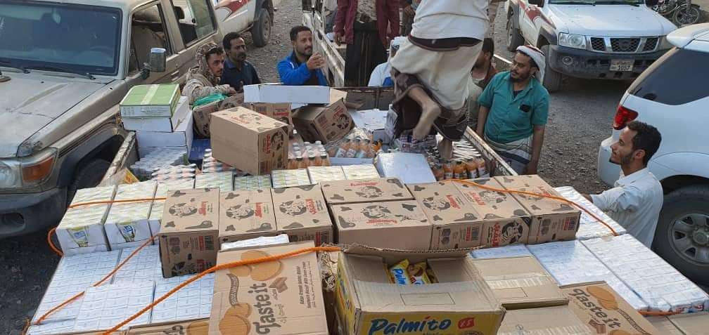 وتكونت هذه القافلة من مواد غذائية جافة ومعلبة كالمشروبات والعصائر والتونة والحليب والأجبان والبسكويت وغيرها من المواد الغذائية الأخرى تقدر قيمتها بنحو خمسون مليون ريال يمني.