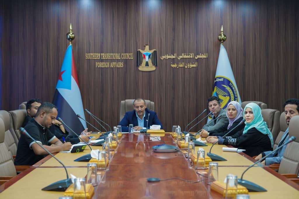 عقدت الإدارة العامة للشؤون الخارجية بالمجلس الانتقالي الجنوبي، اليوم الأحد، اجتماعها الدوري برئاسة أنيس الشرفي نائب رئيس الإدارة.