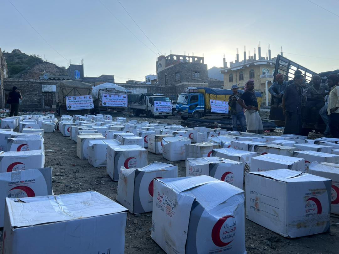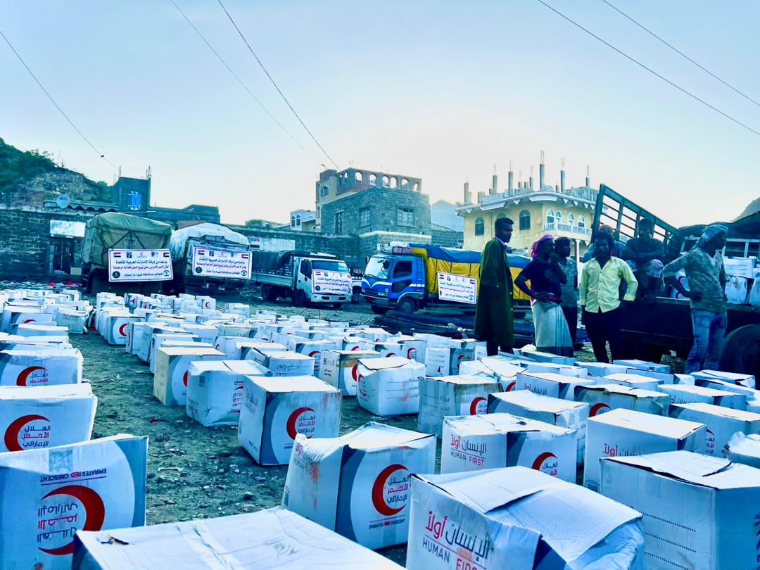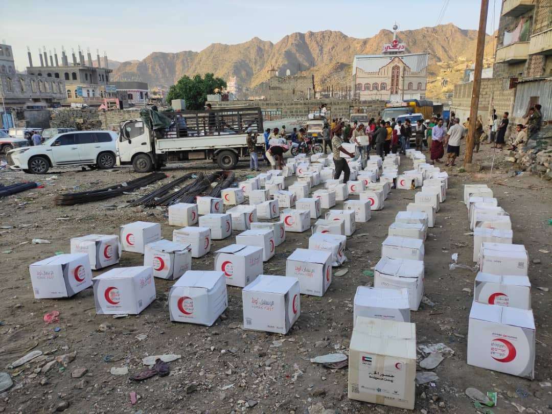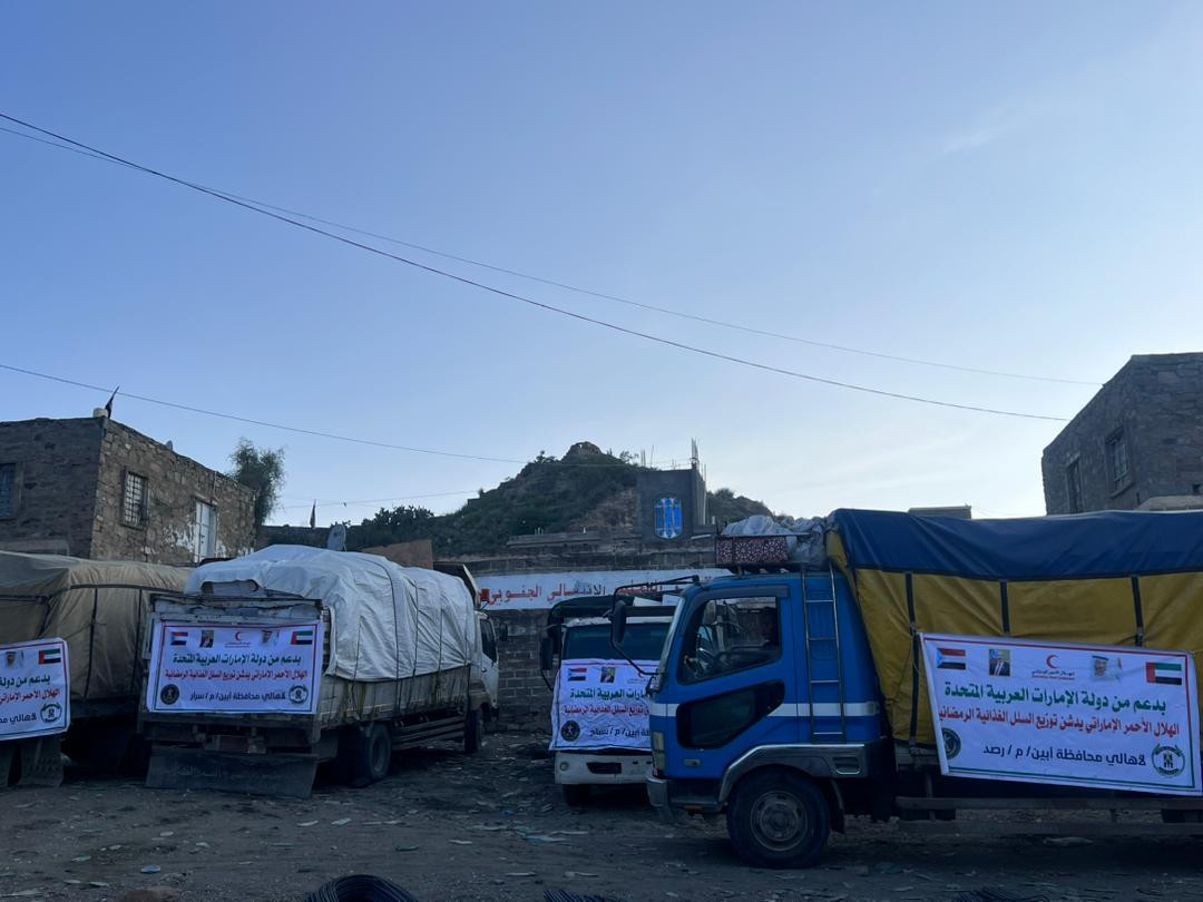 الهلال الأحمر الإماراتي يدشّن توزيع السلل الغذائية في مديريات يافع أبين