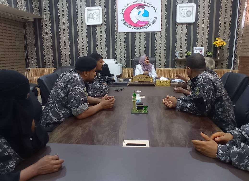 مدير عام مستشفى الصداقة يعقد لقاءً بقيادة حرس المنشآت المكلفة بحماية أمن المستشفى