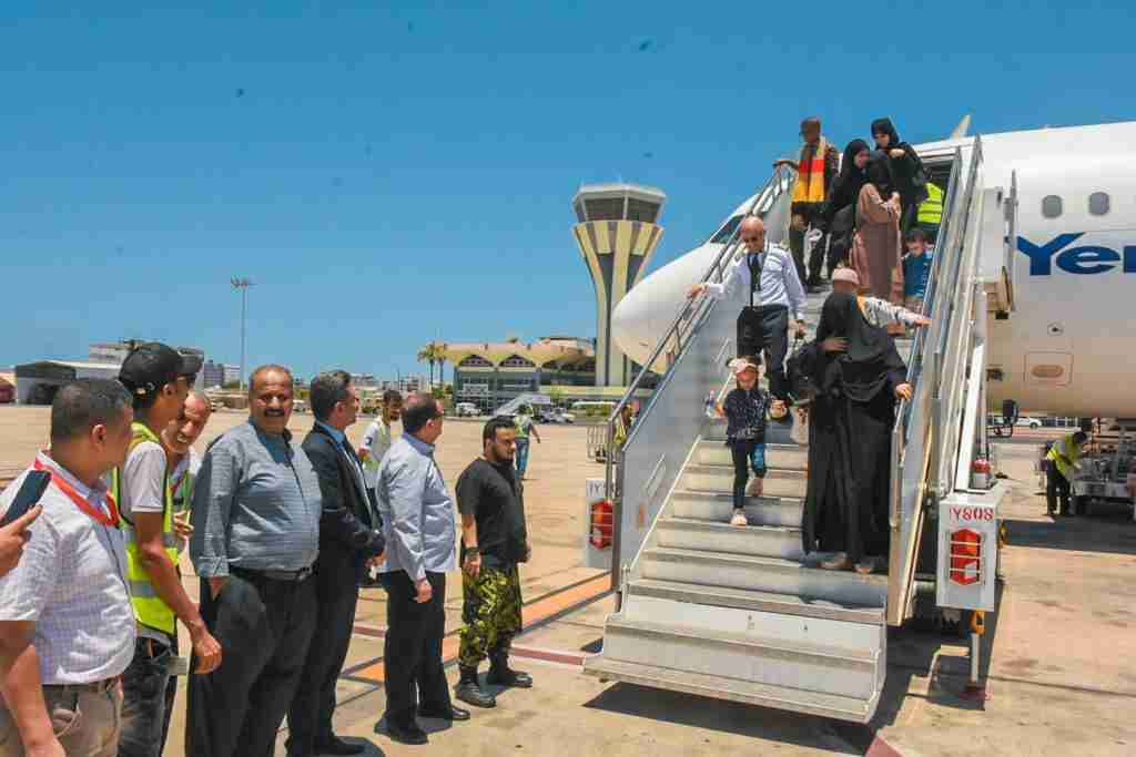 رئيس مجلس إدارة "اليمنية" يستقبل دفعة جديدة من العائدين من بورتسودان