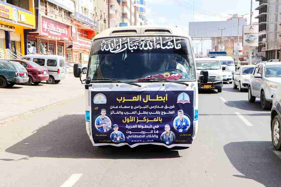 استقبال مهيب في عدن للفائزين في البطولة العربية 14 للروبوت والذكاء الاصطناعي