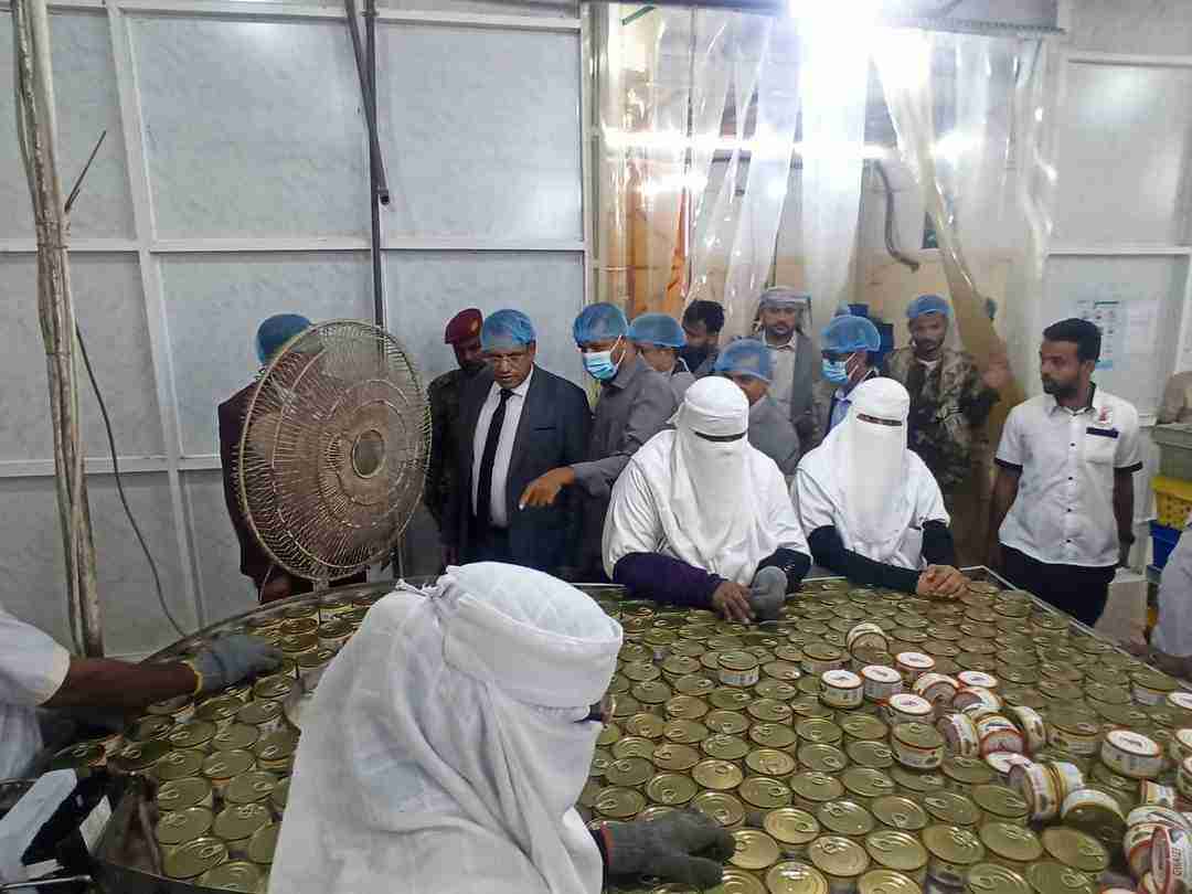 الوزير السقطري يزور مصنع المكلا لتعليب الأسماك ويطلع على سير العملية الانتاجيه والفنية والإدارية