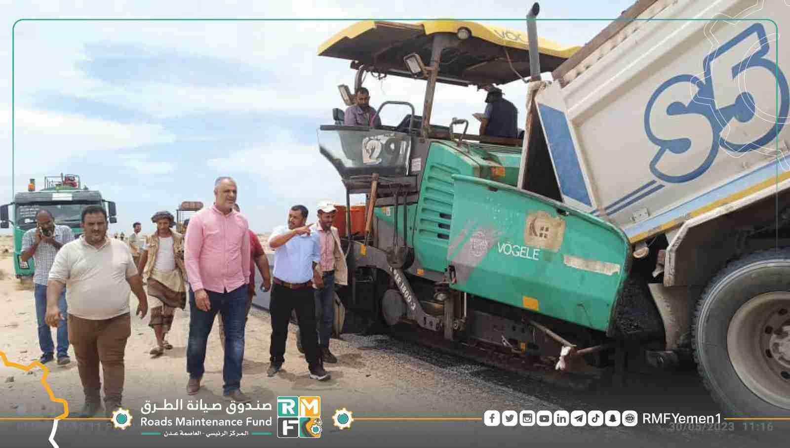 تفقد صباح اليوم رئيس مجلس إدارة صندوق صيانة الطرق والجسور المركز الرئيسي-العاصمة عدن المهندس معين محمد الماس اعمال مشروع صيانة وإعادة تأهيل طريق راس عمران _ المخا بلحج الذي تنفذ أعماله بتمويل ذاتي من صندوق صيانة الطرق.