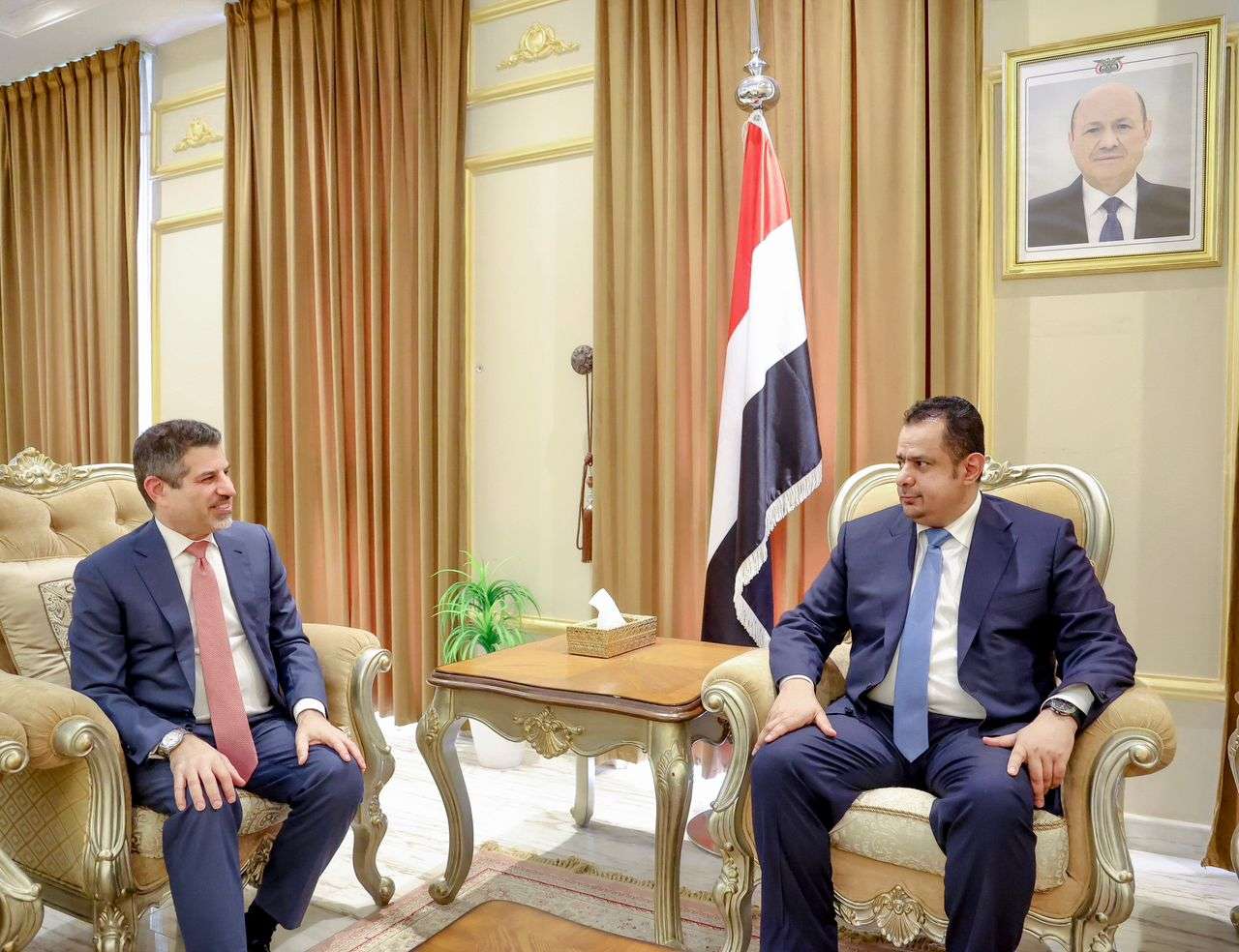 وشدد رئيس الوزراء، على ضرورة إيجاد مسار إقليمي ودولي عاجل لدعم إجراءات الحكومة وخططها لتحقيق الاستقرار الاقتصادي وتفادي التبعات الخطيرة للهجمات الإرهابية الحوثية على موانئ تصدير النفط الخام وتأثير ذلك على الوضع الإنساني الكارثي .. معرباً عن ثقته بقيام الأصدقاء الامريكان بدور فاعل في حث المجتمع الدولي والمنظمات والجهات المانحة على الدعم العاجل للحكومة اليمنية للقيام بدورها في الجوانب الاقتصادية والخدمية، والضغط على مليشيا الحوثي الإرهابية وداعميها من اجل التعاطي الجاد مع المساعي الحميدة لانهاء المعاناة الانسانية التي طال امدها.