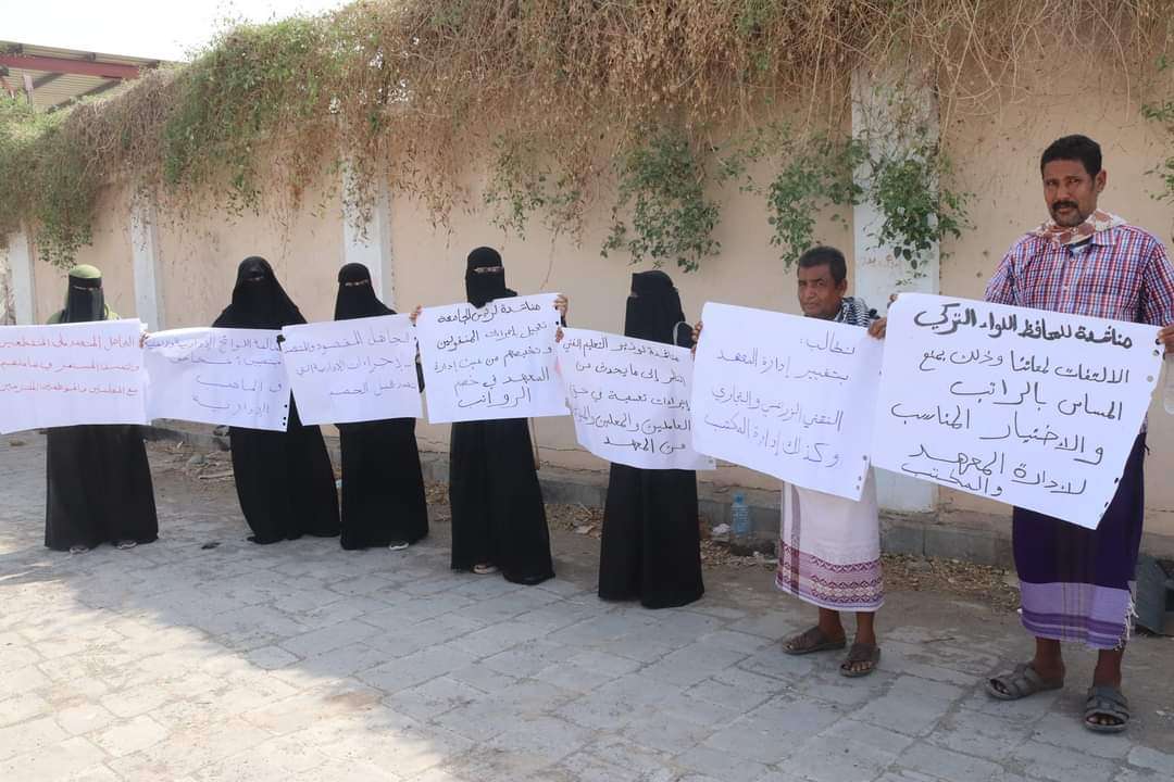 موظفو ومنتسبو المعهد الزراعي والتجاري بلحج ينفذون وقفة احتجاجية .. ويناشدون الوزير والسلطة المحلية
