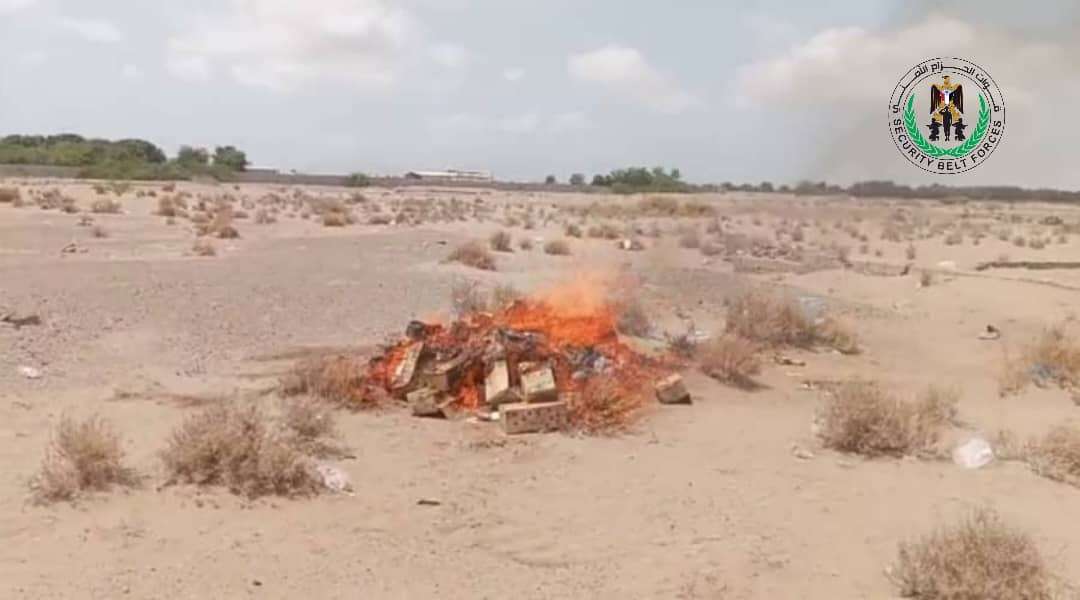 وأوضحت العمليات المركزية لقوات الحزام إن الكميات التي تم اتلافها بلغت 64 كرتوناً، تم ضبطها في نقطة العلم التي ترابط فيها قوات حزام طوق عدن.