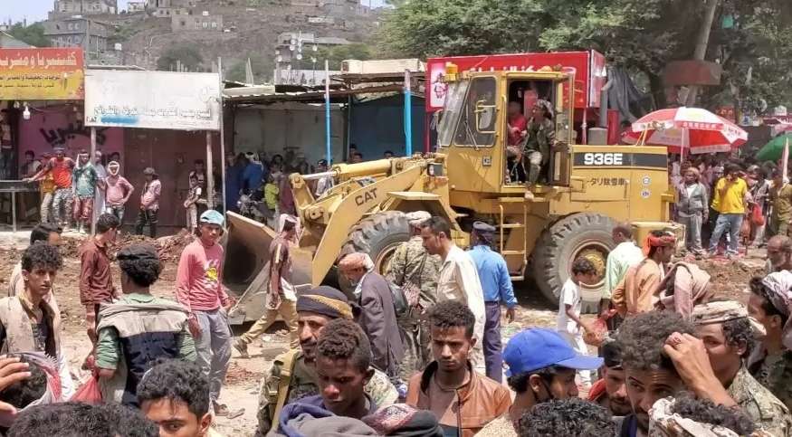 الأجهزة الأمنية تنفذ حملة إزالة العشوائيات في شوارع مدينة الضالع