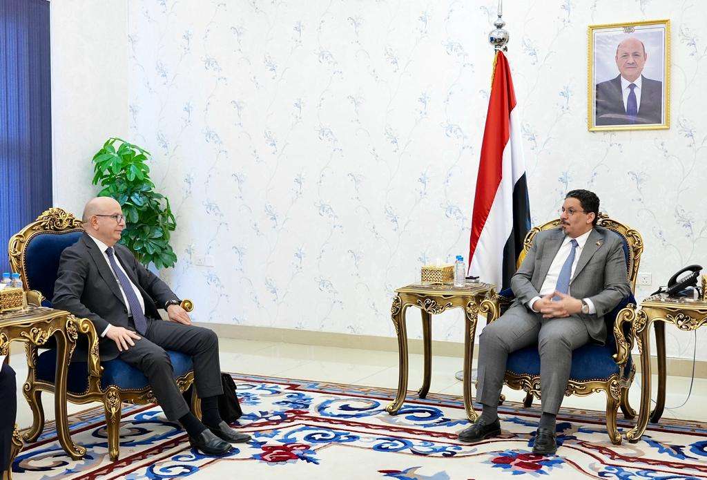بحث وزير الخارجية وشؤون المغتربين الدكتور احمد عوض بن مبارك، اليوم في العاصمة عدن، مع سفير تركيا لدى اليمن مصطفى بولات، العلاقات التاريخية بين البلدين وسبل تعزيزها وتطويرها.