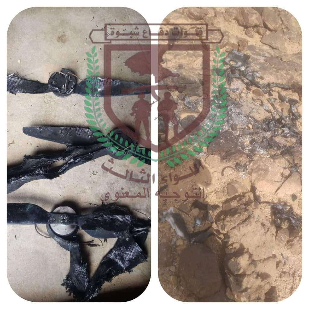 قوات دفاع شبوة تسقط طائرة حوثية مسيرة في جبهة حريب