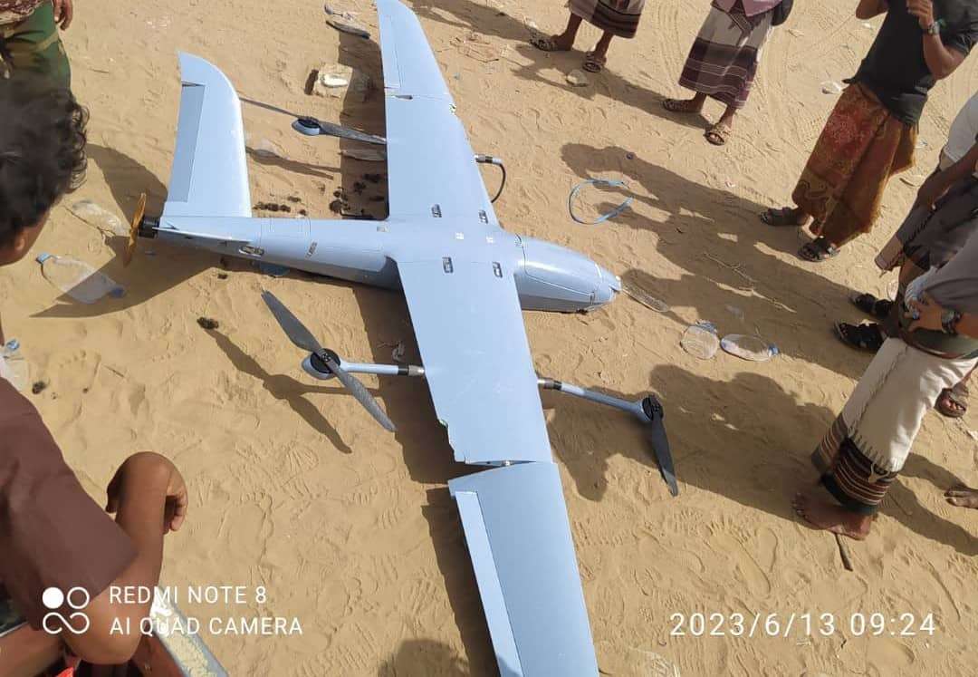 قوات دفاع شبوة تسقط طائرة مسيرة حوثية في بيحان