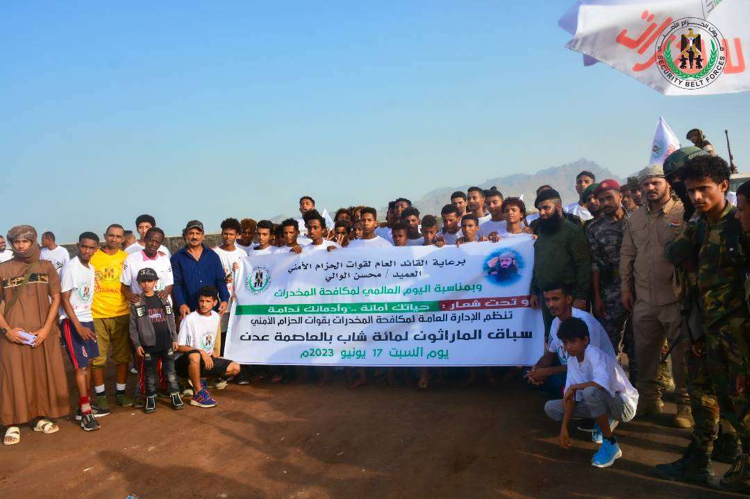 نظمت إدارتا مكافحة المخدرات،والتدريب البدني والرياضي، بقوات الحزام الأمني،عصر اليوم “مارثون” سباق رياضي، في العاصمة عدن بمشاركة 100 متسابق،يمثلون عدد من اندية العاصمة عدن،ومنتسبي الحزام، وذلك بدعم من القائد العام للحزام الأمني العميد محسن عبدالله الوالي.