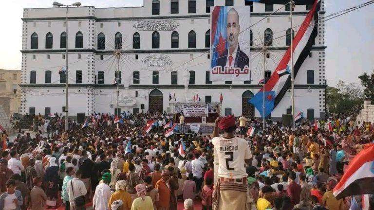 احتشد الآلاف من أبناء مديريات غيل باوزير وغيل بن يمين ودوعن في ساحة المدرسة الوسطى في غيل باوزير بمحافظة حضرموت، اليوم الجمعة، إحياء ليوم الأرض الجنوبي.