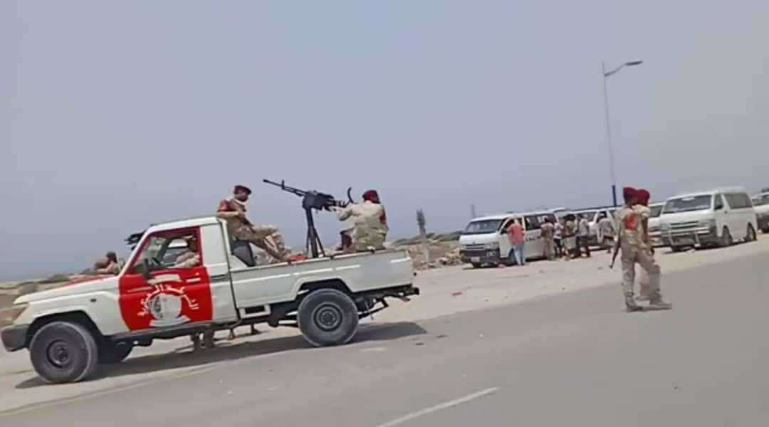 قوات النخبة الحضرمية تعترض باصات نقل تحمل جنود شماليين متجهة صوب القصر الرئاسي بالمكلا