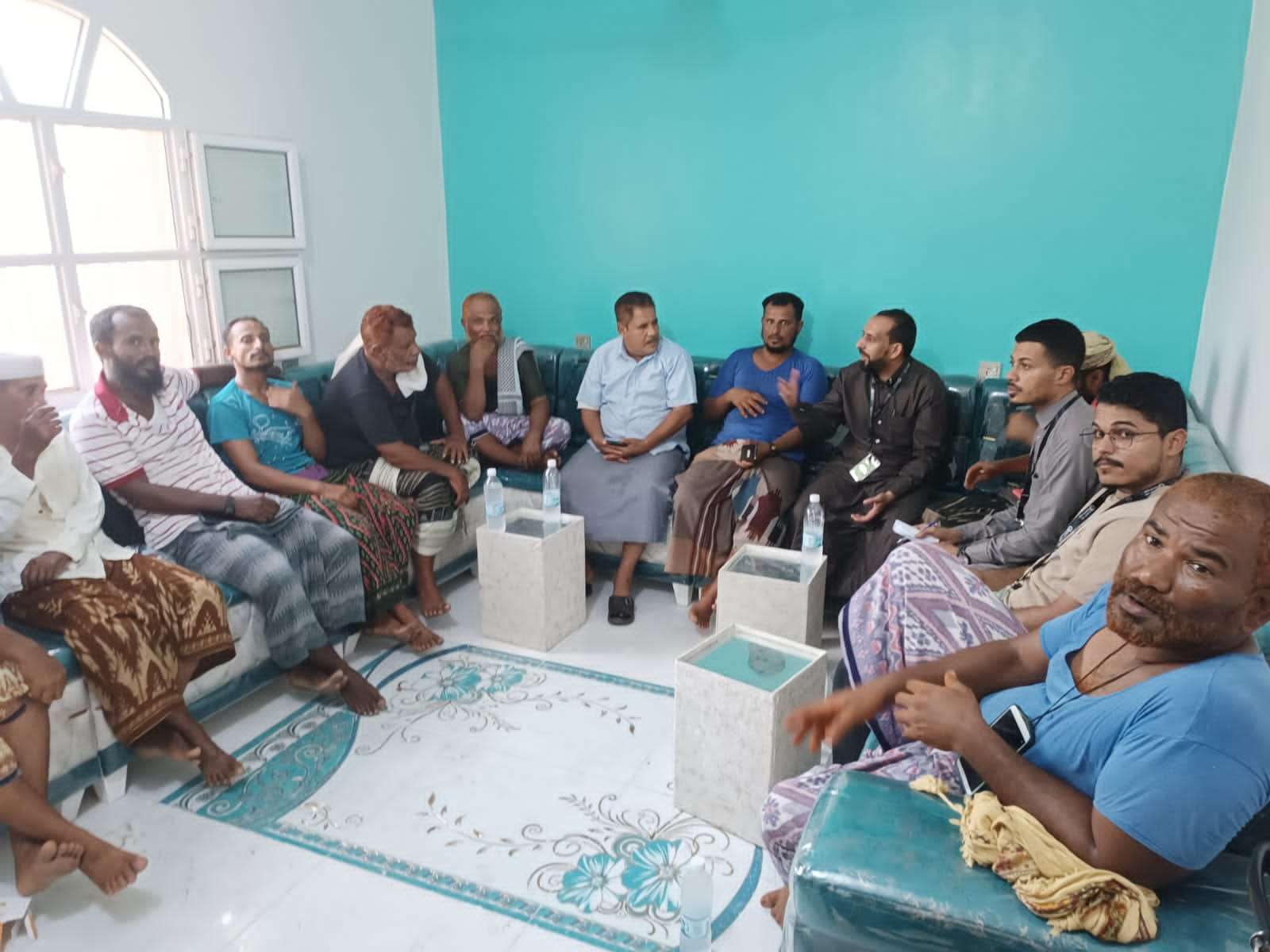 التقي مدير بنك القطيبي الإسلامي فرع صلاح الدين م/خالد بن ظفر، صباح اليوم الأحد، مدير وأعضاء جمعية صيادي رأس عمران التعاونية السمكية، في ساحل منطقة رأس عمران بمديرية البريقة.