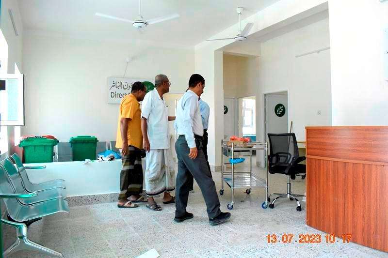 العمودي يطلع على سير العمل للتجهيزات النهائية للوحدة الصحية في منطقة الثبرة - تريم بحضرموت