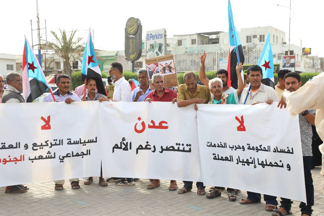 العاصمة عدن تشهد فعالية جماهيرية رفضاً لسياسات الحكومة وحرب الخدمات التي تمارسها ضد المواطنين