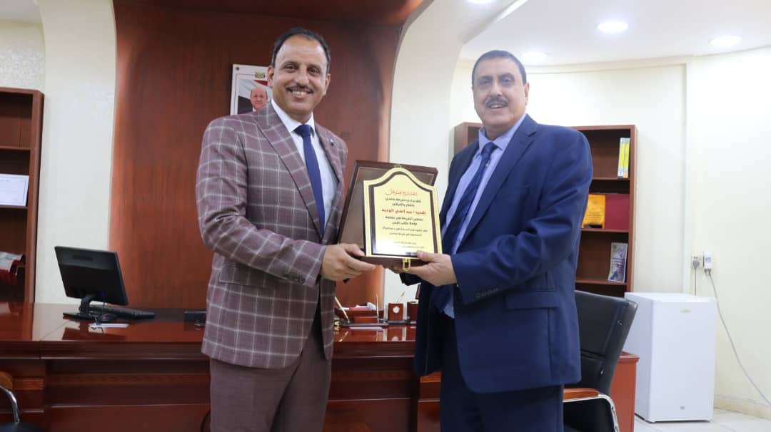 وتسلّم الدرع التكريمي المقدم من مدير عام شرطة عدن اللواء مطهر الشعيبي الأستاذ عبدالغني الوجيه مستشار الشرطة في البرنامج الإنمائي للأمم المتحدة (UNDP).