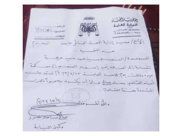 ويأتي هذا التوجيه لعقد أول جلسات المتهم في جريمة القتل حسين هرهرة، والمحتجز في إدارة البحث الجنائي بالعاصمة عدن منذ ارتكاب الجريمة عشية عيد الأضحى المبارك.