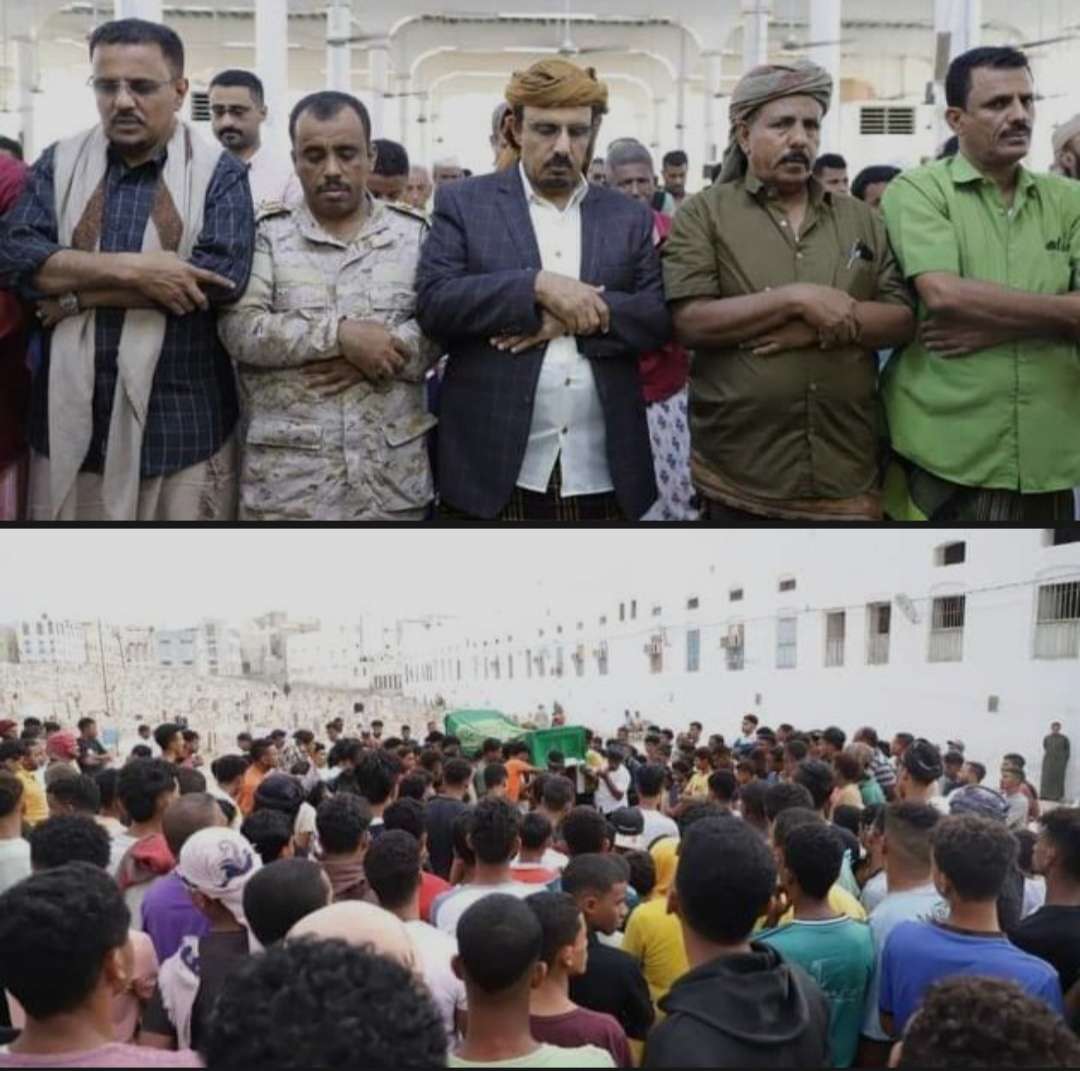 تقدّم محافظ حضرموت الأستاذ مبخوت مبارك بن ماضي، عصر اليوم، جموع مشيّعي جنازة شهيد الواجب الجندي بقوات خفر السواحل الشاب أحمد خالد بانافع، الذي استشهد غرقًا اليوم وهو يُنقذ حياة شخصين بمياه بحر العرب قبالة شارع الستين بالمكلا.
