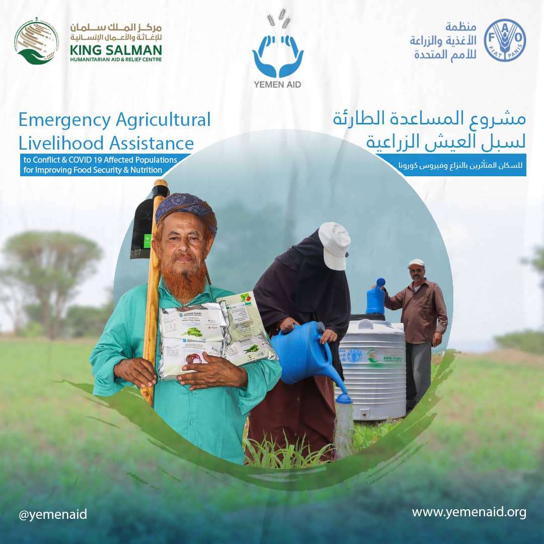اختتمت منظمة الأغذية والزراعة التابعة للأمم المتحدة ( FAO ) عبر شريكها المنفذ "يمن أيد" وبدعم مركز الملك سلمان للإغاثة والأعمال الإنسانية مشروع "المساعدة الطارئة لسُبل العيش الزراعية للسكان المتأثرين بالنزاع وجائحة كورونا في محافظة لحج" الذي يهدف إلى تحسين الأمن الغذائي للأسر المستهدفة من خلال دعم الإنتاج الزراعي والتنوع الغذائي وتعزيز الإنتاج الحيواني.