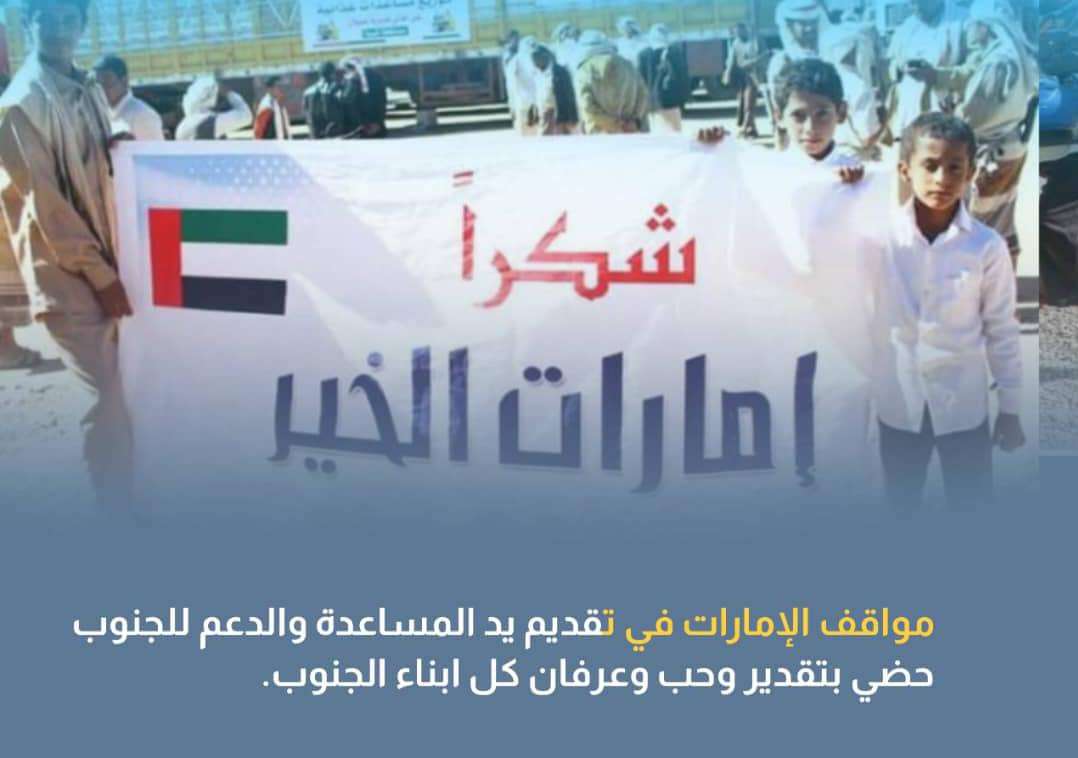إن الإنتصارات التي انجزتها المقاومة الجنوبية والقوات المسلحة الجنوبية، في معركة التصدي للمليشيات الحوثية ومشروعها الإيراني وفي مكافحة الإرهاب ، كان من الصعب تحقيقها ، لولا الدور الذي إضطلعت به دولة الإمارات العربية المتحدة ضمن التحالف العربي الذي تقوده المملكة العربية السعودية.
