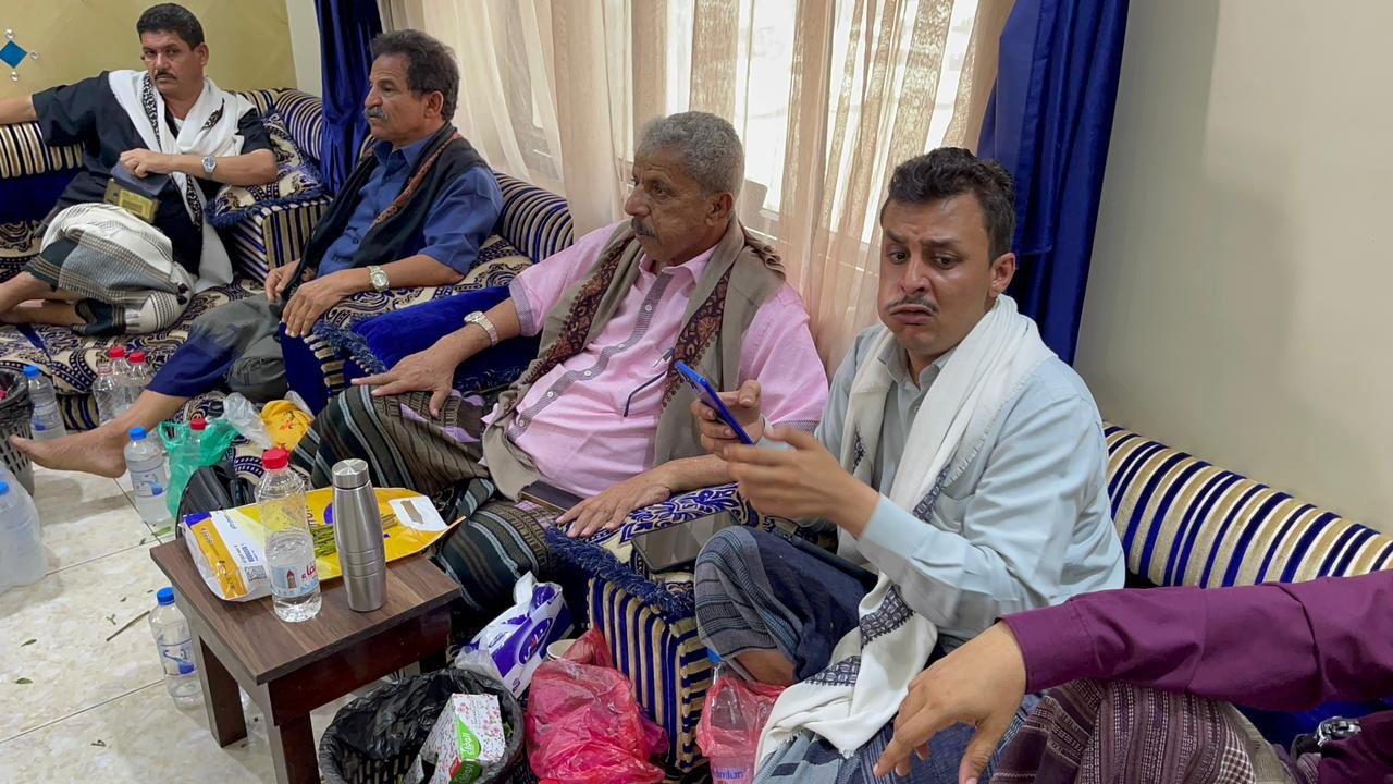 استقبال جموع المعزين بوفاة الشيخ عبدالله العمودي بعدن