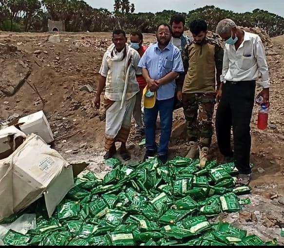 نفذ مكتب الصناعة والتجارة مديرية دار سعد اليوم الخميس برفقة لجنة مكونة من شرطة بئر فضل وقوات الطوارئ وقسم صحة البيئة عملية إتلاف كمية 3600 باكتا من شمة الحوت ،التي تم ضبطها في وقت سابق في مديرية دار سعد.