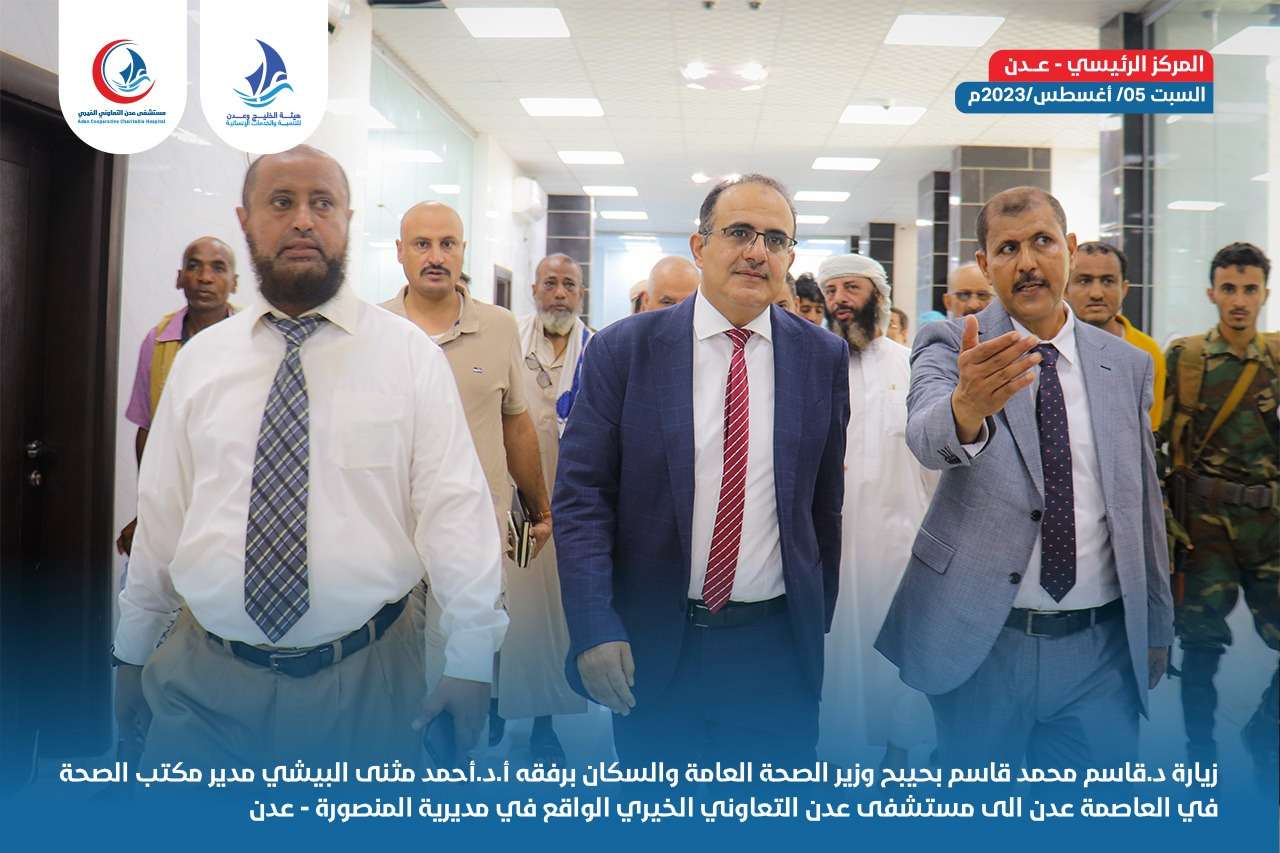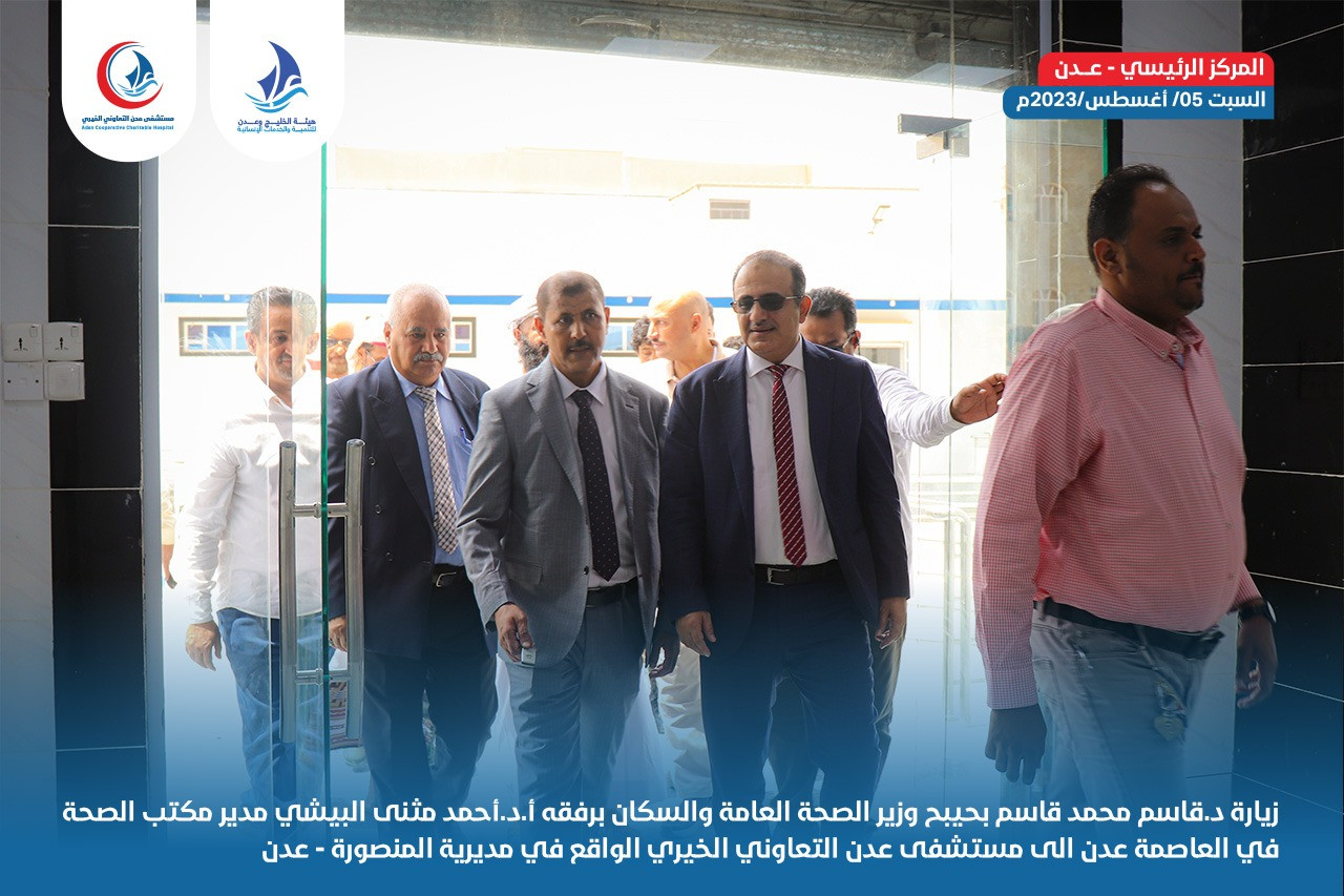 تفقد وزير الصحة العامة والسكان أ.د.قاسم محمد بحيبح, صباح اليوم مستشفى عدن التعاوني الخيري التابع لهيئة الخليج وعدن للتنمية والخدمات الإنسانية في مديرية المنصورة بالعاصمة عدن.