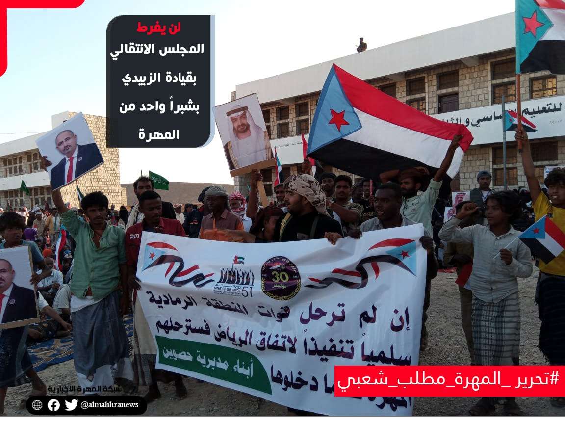 وطالبوا بسرعة تحرير المهرة، وإخراج القوات الشمالية المحتلة المتواجدة في كل مديرياتها، وإحلال قوات مهرية جنوبية من أبناء المهرة، بحسب ما جاء في بنود اتفاق الرياض.