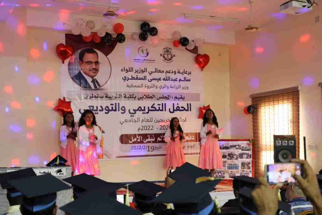 المجلس الطلابي بسقطرى يقيم حفلاً طلابياً بتخرج دفعة من كلية التربية