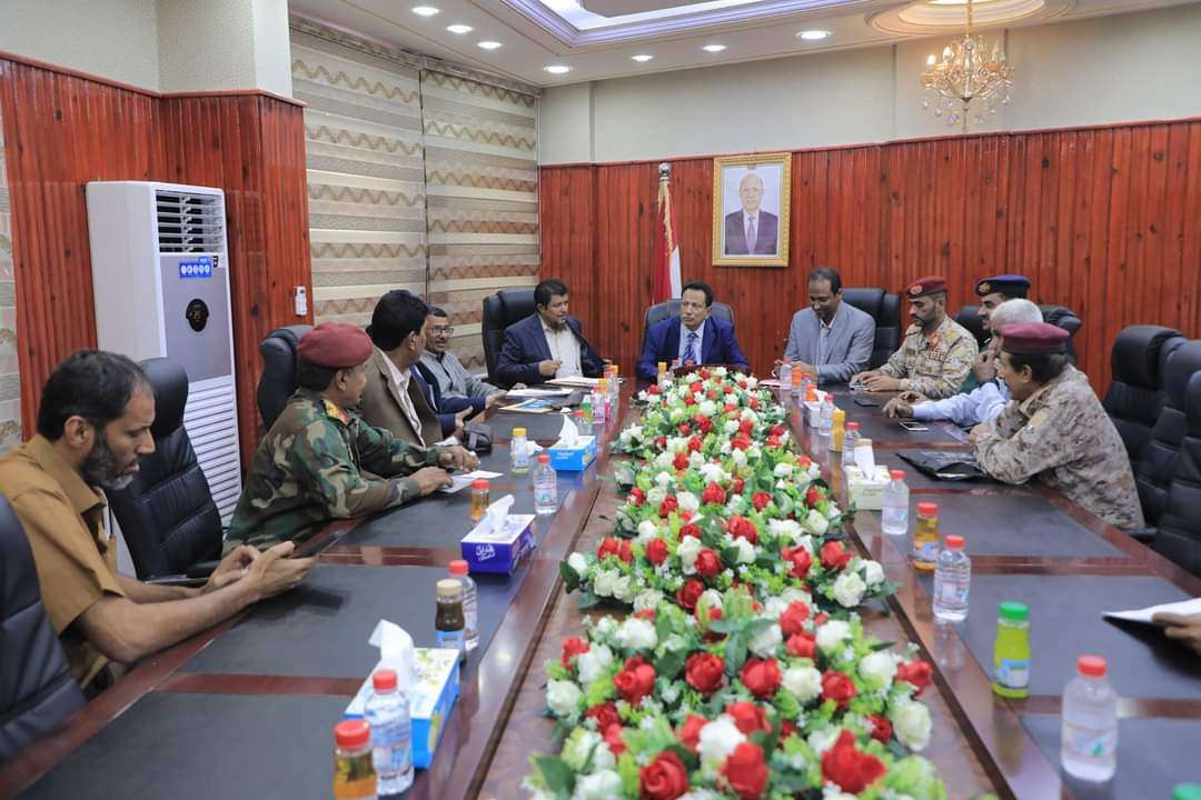 محافظ المهرة يلتقي إدارة منفذ شحن والجهات الأمنية والعسكرية لمناقشة أوضاع المنفذ