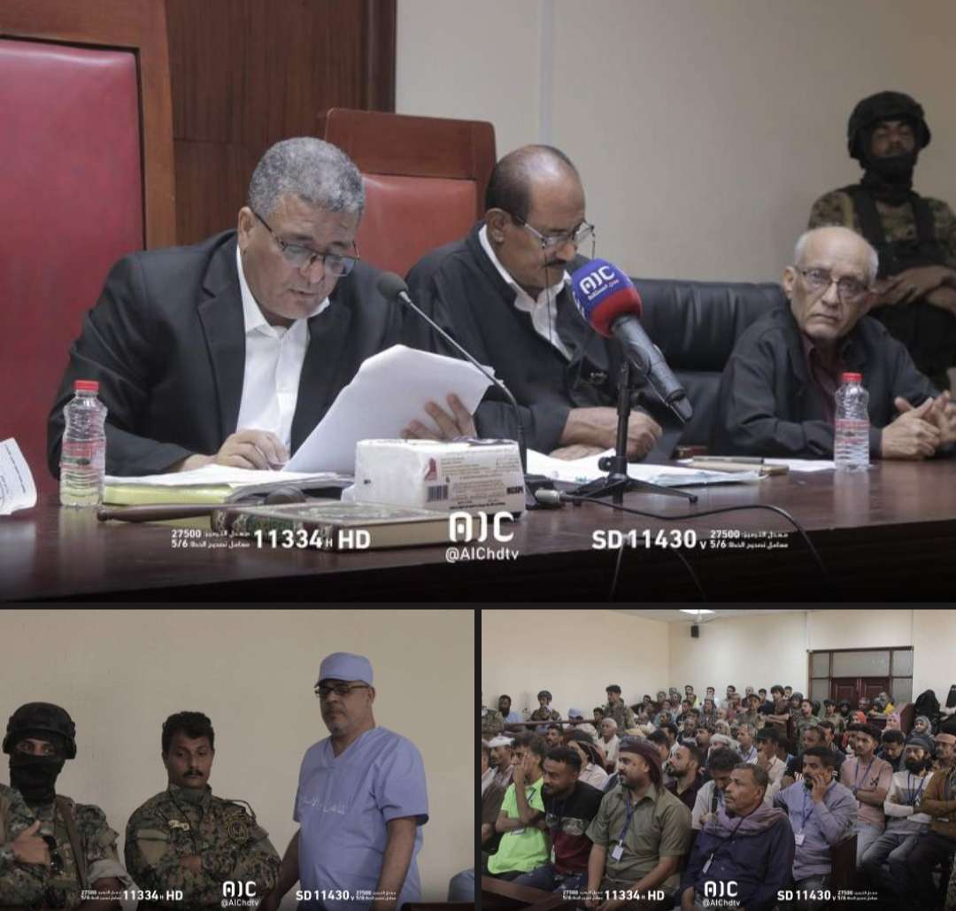 حضر الجلسة محامي المتهم د/ علي مهدي بارحمه وعوض علي عوض الأحمدي ومحامين أولياء دم المجني عليهما المكون من عارف الحالمي وصالح عبدالله البعداني ومحمد عبدالكريم العمراوي.