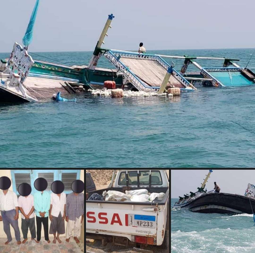 المهرة .. أمن سيحوت يضبط شحنة مخدارت بعد غرق القارب"عبري" الذي كانت على متنه
