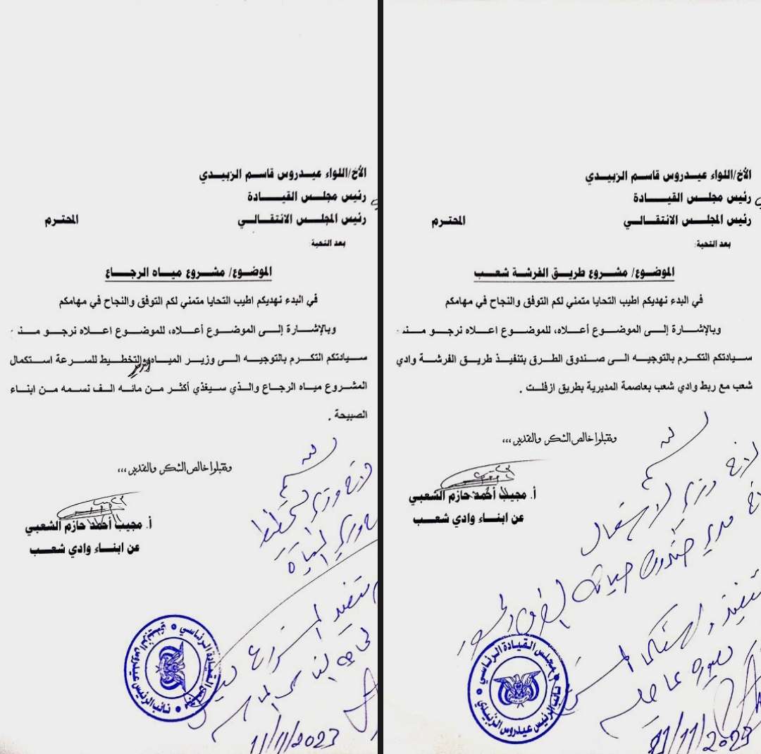 وجاءت توجيهات الزبيدي عطفا على مذكرتين تقدم بها الشخصية الاجتماعية والوطنية، مجيب الشعبي، نيابة عن ابناء وادي شعب والصبيحة.