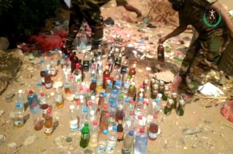 حزام لحج يتلف كمية من الخمور المضبوطة