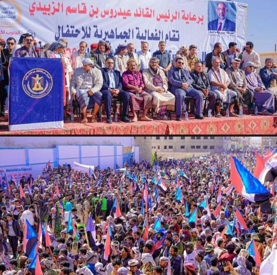 شهدت محافظة شبوة، صباح اليوم الخميس، فعالية جماهيرية حاشدة، احتفالاً بحلول الذكرى الـ56 لعيد الاستقلال الثلاثين من نوفمبر المجيد، بحضور رئيس القيادة المحلية للمجلس الانتقالي الجنوبي بالمحافظة الأستاذ عبدالعزيز مهدي بن لكسر واعضاء الهيئة التنفيذية والقيادة المحلية للمجلس بالمحافظة وعدد من مسؤولي السلطة المحلية بالمحافظة والقيادات العسكرية والأمنية والوجهاء والأعيان والشخصيات الاجتماعية.
