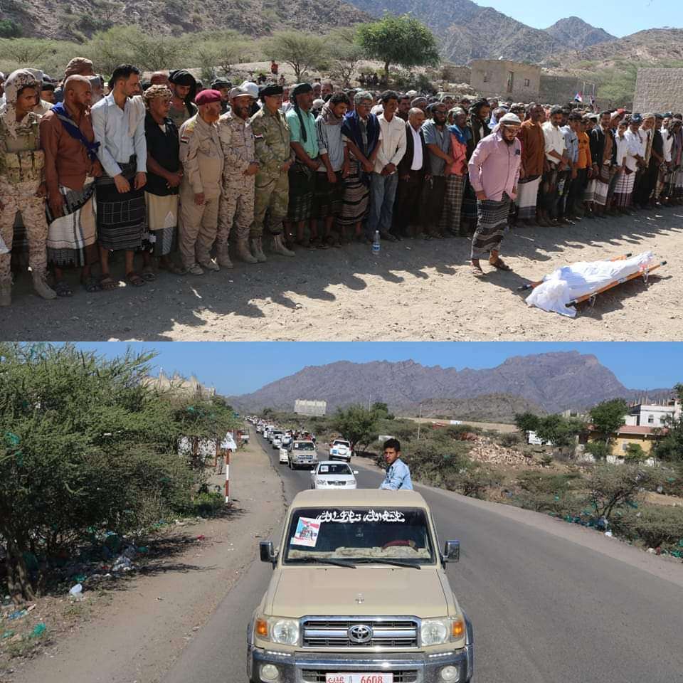 وسط حزن وألم كبير شيع المئات صباح اليوم الثلاثاء جثمان الشهيد البطل النقيب قاسم سيف معبد العلياني أركان الكتيبة الثانية باللواء الثاني صاعقة في مسقط رأسه بمقبرة قرية الكرهية بمديرية حبيل الجبر، ردفان بمحافظة لحج.