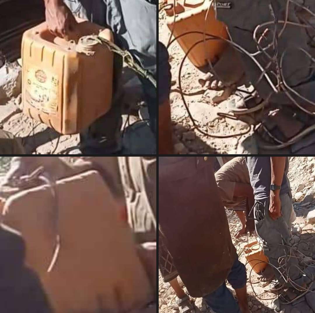 وكانت العبوة منتظرة التفعيل بربط البطارية لتفجيرها قبل أن تعثر عليها قوات الطوارئ وتسلمها إلى العمليات المتقدمة لكي يقوموا بتسليمها لفريق مسح الالغام.