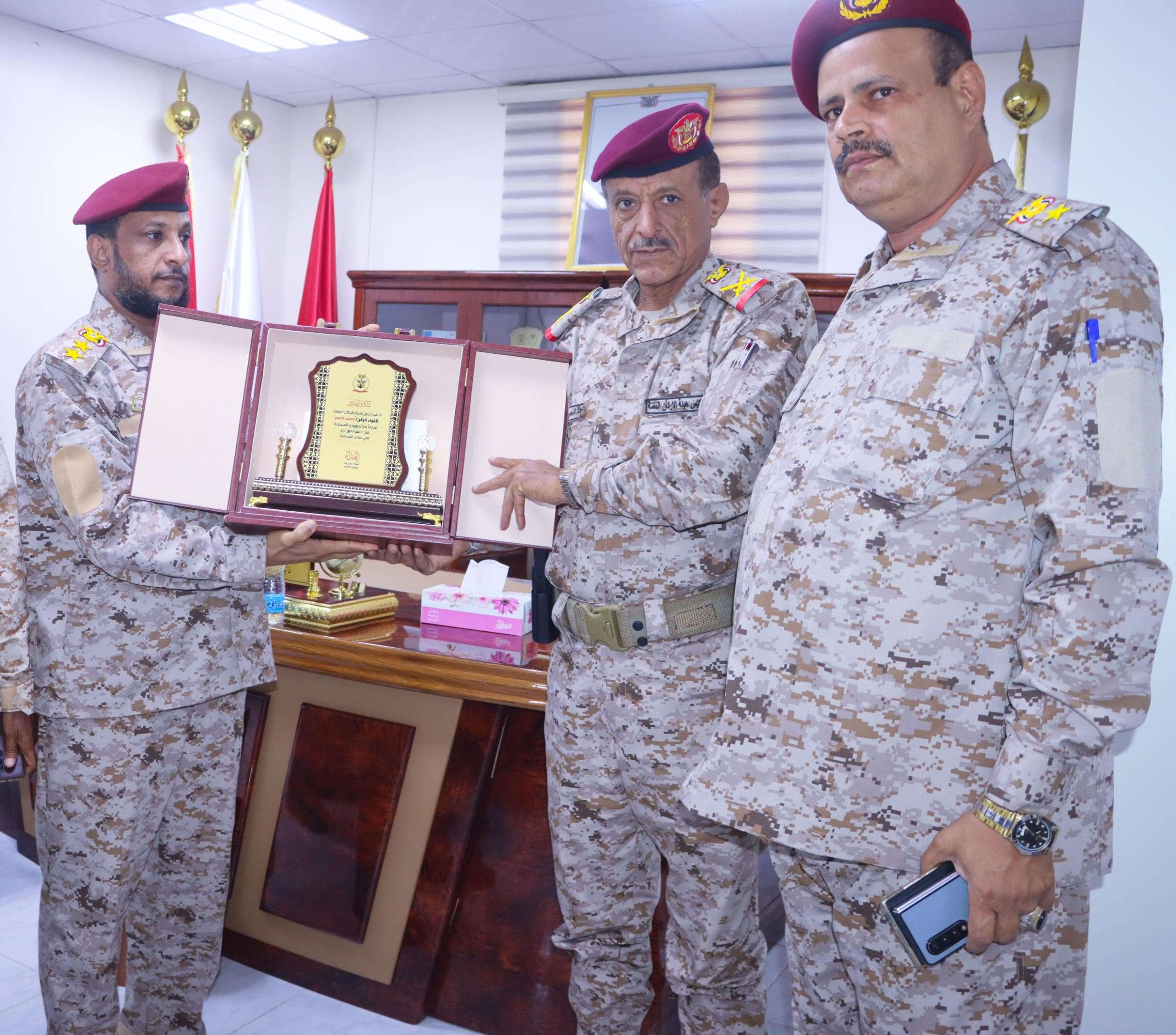 مدير القاعدة الإدارية محور تعز يكرم اللواء الركن / احمد البصر سالم نائب رئيس هيئة الأركان العامة