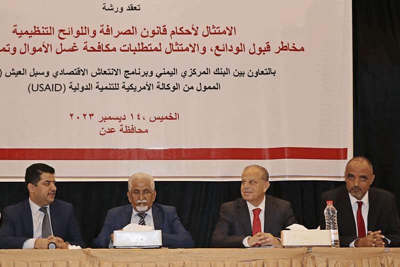 نظم البنك المركزي اليمني في العاصمة عدن اليوم الخميس ورشة عمل للمدراء التنفيذيين لشركات الصرافة العاملة في اليمن حول الامتثال لأحكام قانون الصرافة واللوائح التنظيمية، ومخاطر قبول الودائع، والامتثال لمتطلبات مكافحة غسل الأموال وتمويل الإرهاب.