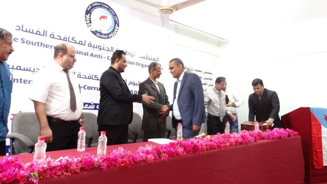 المنظمة الوطنية الجنوبية لمكافحة الفساد تكرم مدير عام المنصورة بعدن أحمد الداؤودي