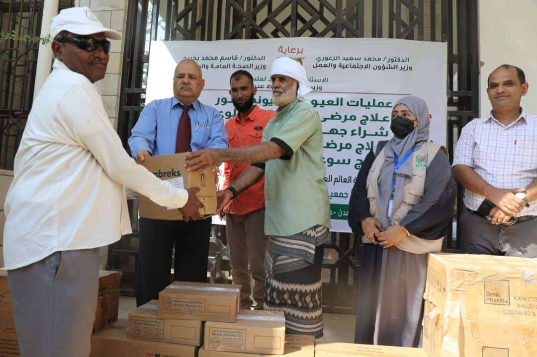دشن مدير عام مكتب الصحة العامة والسكان بالعاصمة عدن أ.د. احمد مثنى البيشي في مبنى الصحة بالمحافظة توزيع الأدوية و مستلزمات طبية لمستشفى عبود العسكري ومرافق صحية في المديريات التواهي وخور مكسر و دارسعد، وذلك بدعم لجنة العالم العربي جمعية إحياء التراث الإسلامي وجمعية صندوق إعانة المرضى بدولة الكويت الشقيقة في مجالات عمليات العيون وعلاج مرضى الغسيل الكلوي وشراء جهاز للغسيل الكلوي وعلاج سوء التغذية وحمى الضنك والكوليرا في محافظات عدن، بتنفيذ جمعية الحكمة اليمانية الخيرية.